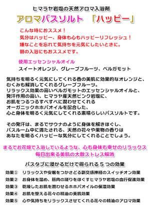 ヒマラヤ採れたピンク岩塩に、気持ちを明るくハッピーにしてくれる精油と、お肌の潤いを保つホホバオイルをブレンドしました。