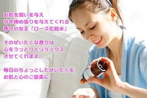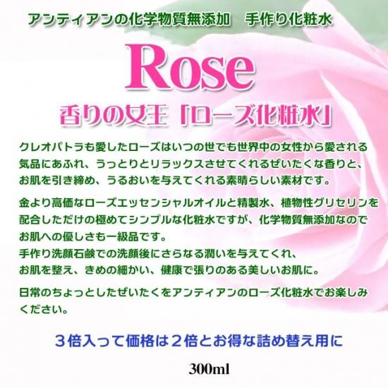 お肌に張りと、潤いを与え整えながら、エレガントなその香りは心を優雅にリラックスさせてくれるローズオットーエッセンシャルオイルと、お肌を優しく潤わす植物性グリセリン、精製水を配合したシンプルな手づくりの化粧水です。