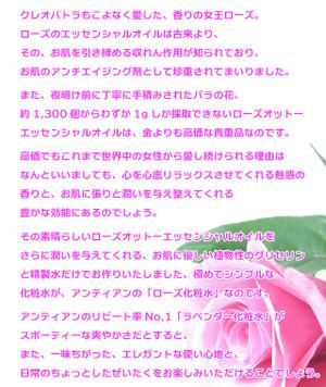 アンティアンの手作り洗顔石鹸「ローズ」 をお使いいただいた後に、さらに保湿が必要な方に最適です。