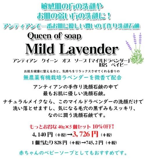 無添加手作り洗顔石鹸アンティアン「マイルドラベンダー」【5個セット】会員様限定10%OFF!※有機栽培ラベンダーを微香で配合した化学物質無添加で敏感肌に優しく潤う洗顔石鹸